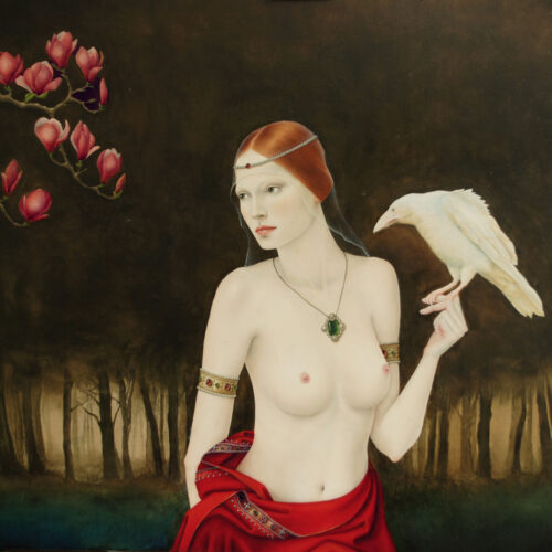 - Justyna Giza „Biały kruk”– z cyklu „Kobiety z wizerunkami białych ptaków”, 2012-2013, olej na desce, wymiary 45×50 cm, / NIEDOSTĘPNY
