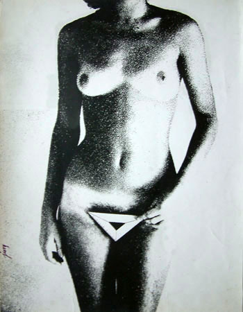 - Tomasz Jura „Striptiz”, nie datowany, sitodruk podkolorowany, wymiary 40,3×27,3 cm, sygnowany na odwrocie