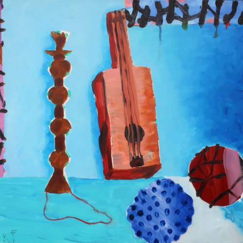 - Yolanta Nikt, Martwa naturka z dziwnym świecznikiem, 2019, olej na płótnie, wymiary 60 x 70