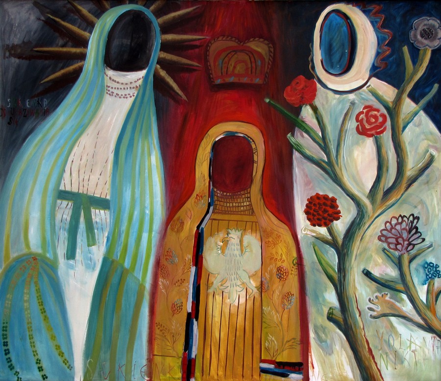 - Yolanta Nikt, „Sukienki Maryjne”, 2005, olej na płótnie, wymiary 120×140 cm