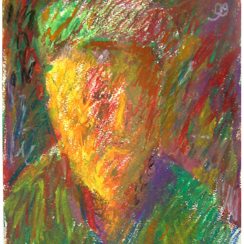 - Jerzy Panek „Autoportret”, 1999r. , pastele olejne na papierze, wymiary 29,6×21 cm