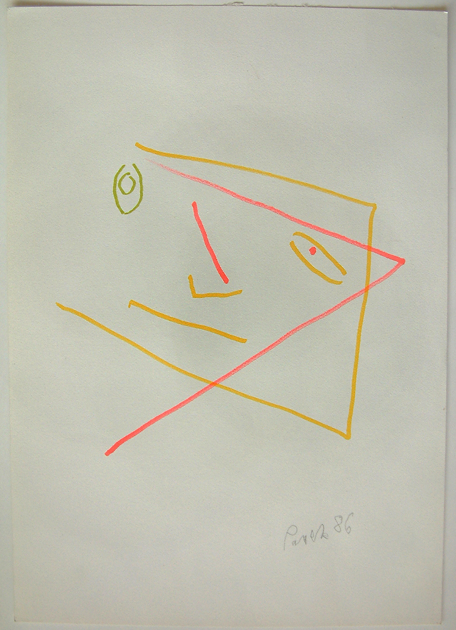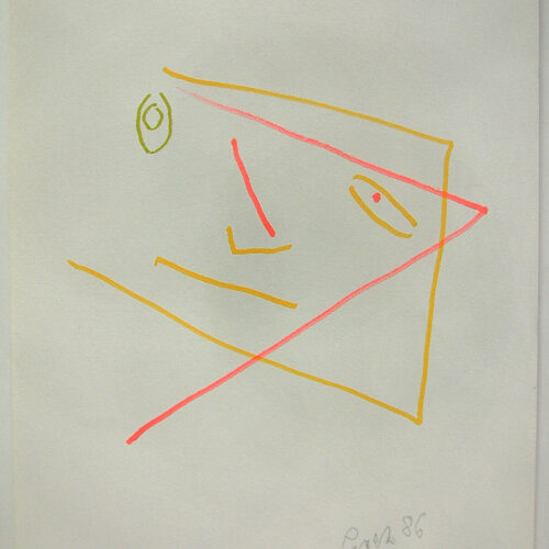 - Jerzy Panek „Autoportret 1986r. flamastry na papierze, wymiary 42×29,8 cm.
