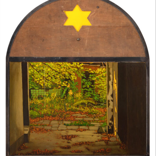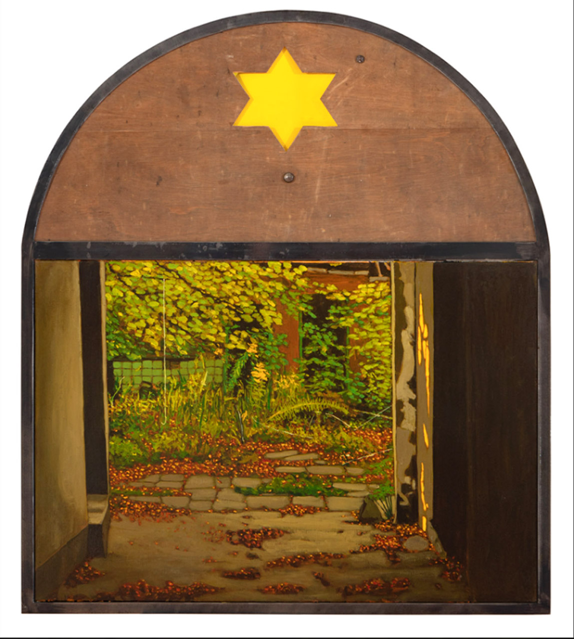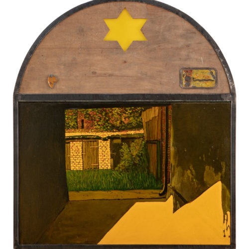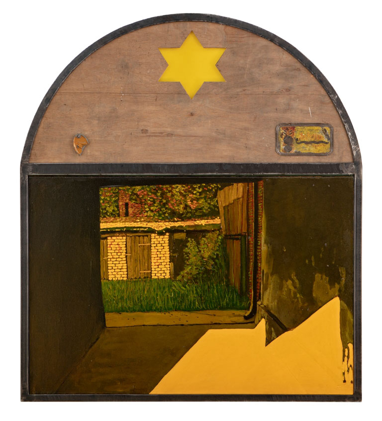 - Jacek Rykała „Adresat nieznany, Żydom z Będzina”, 2018, olej na płótnie + collage, wymiary 103×91 cm