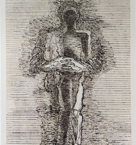 - Jacek Waltoś, „Samorodzenie”, 1970, miękki werniks, wymiary 24×20 cm